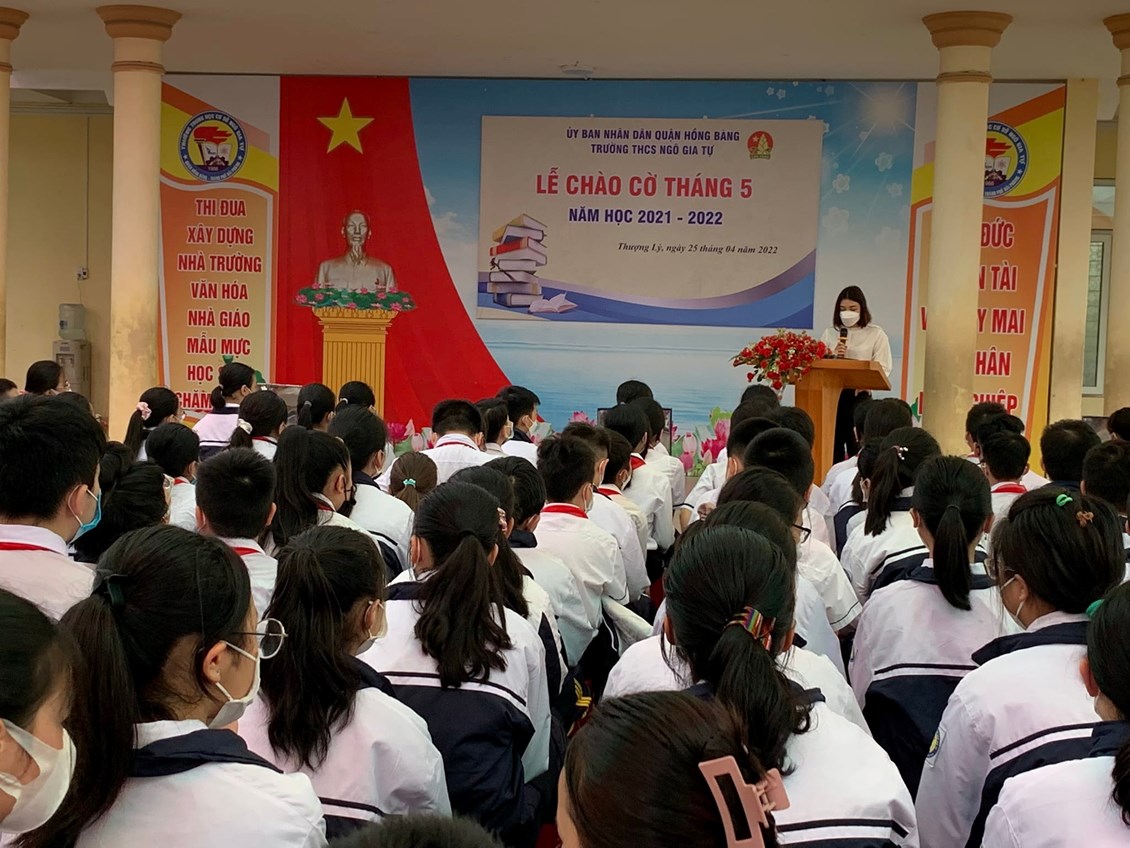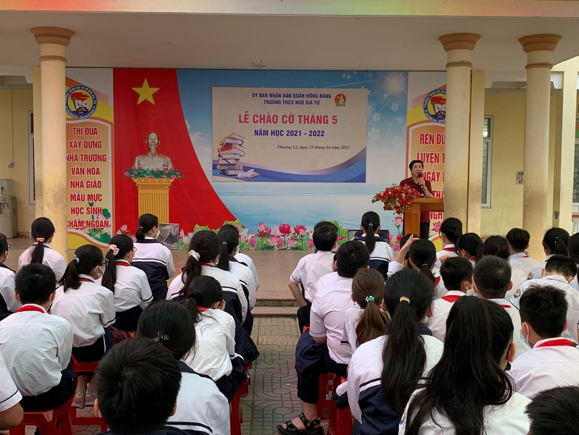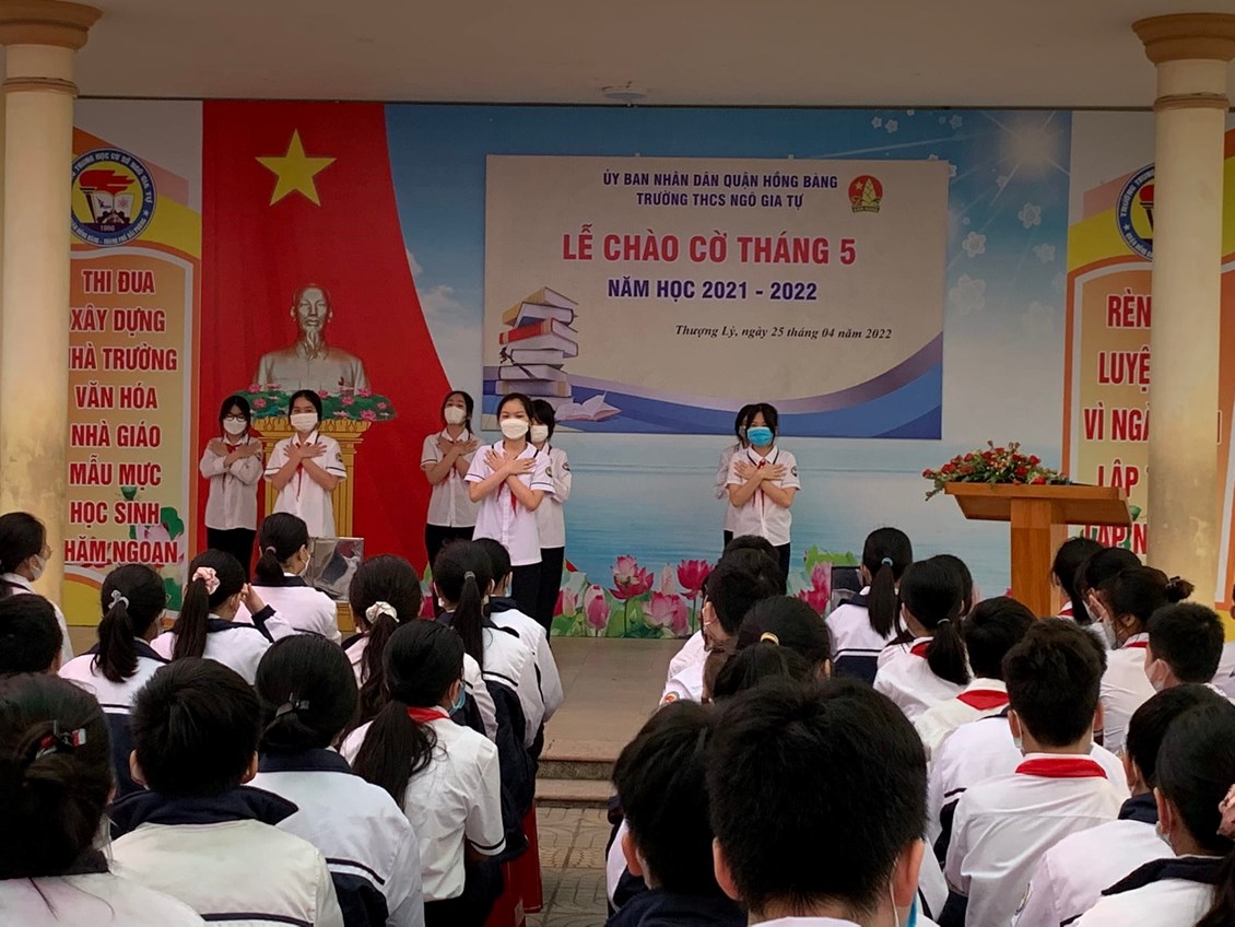 Tháng 5 về - tháng của mùa hè gọi tiếng ve kêu và thắp lên màu lửa cháy của hoa phượng. Tháng 5- tháng của mùa chia li đang đến rất gần, tháng của mùa thi khép lại một năm học nỗ lực phấn đấu của học trò bằng điểm số trên những bài thi.... Phải chăng vì những lẽ đó mà ta yêu tháng 5, nghe tim mình bồi hồi khi hè gõ cửa và vạt nắng về lấp lánh chiếu soi trên hàng cây nơi sân trường mỗi sớm mai. Còn thầy cô ở Liên đội THCS Ngô Gia Tự lại vì một lẽ khác mà cố gắng tổ chức một buổi chào cờ thật long trọng để chào đón tháng 5 cho các em.