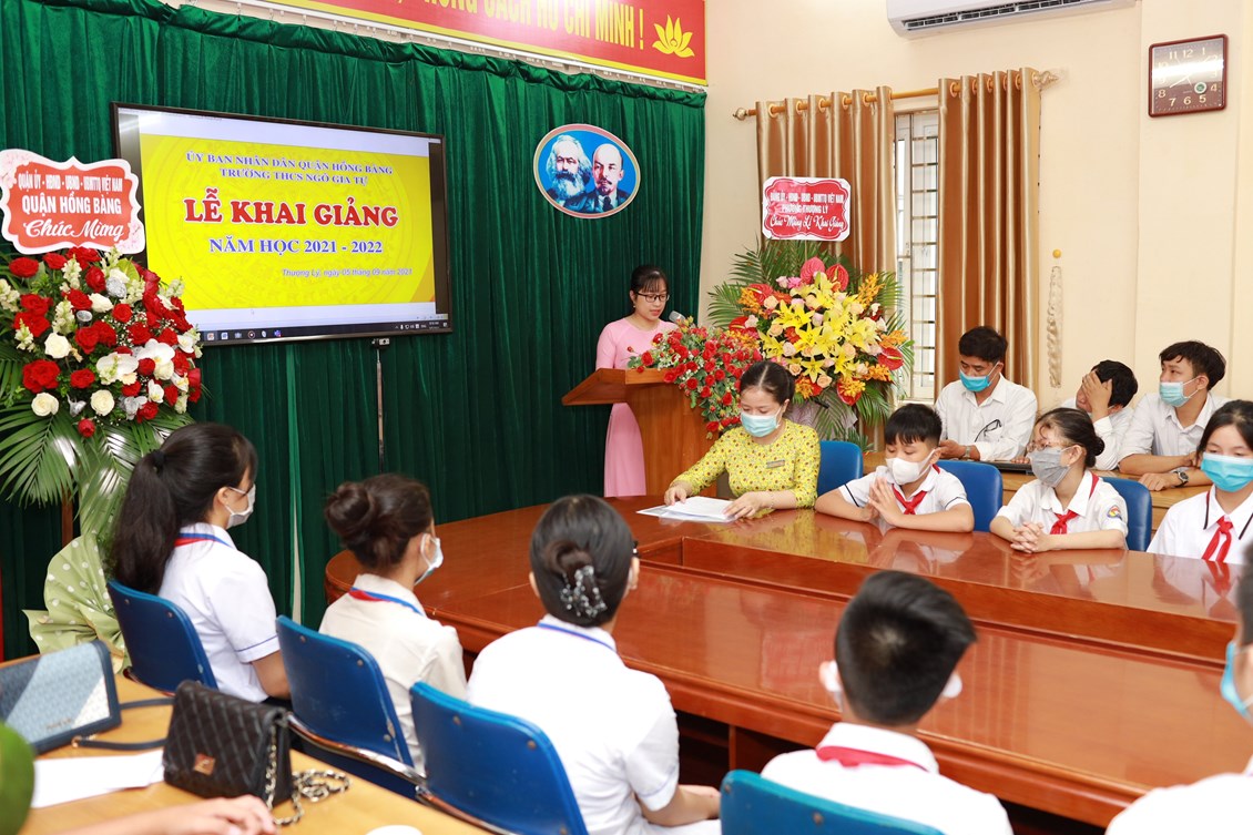 Hòa chung trong không khí tưng bừng của cả nước đón chào năm học mới, thực hiện Công văn số 1630/UBND-GDĐT ngày 31/8/2021 của UBND quận Hồng Bàng về thời gian tựu trường, khai giảng, tổ chức dạy và học năm học 2021-2022; Công văn số 228/PGDĐT ngày 31/8/2021 của Phòng GD&ĐT về việc hướng dẫn chương trình khai giảng năm học 2021-2022; Hôm nay, trường THCS Ngô Gia Tự long trọng tổ chức Lễ khai giảng năm học mới 2021- 2022.