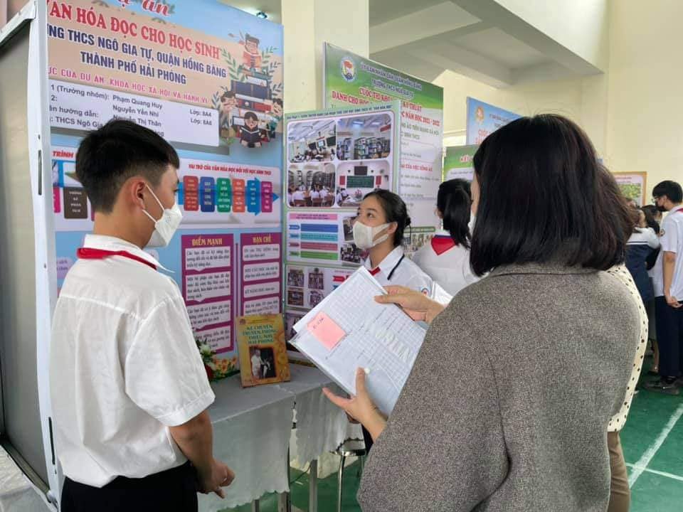 Thực hiện kế hoạch năm học 2021-2022, sáng ngày 27/10/2021, phòng GD&ĐT quận Hồng Bàng tổ chức khai mạc cuộc thi NCKHKT dành cho học sinh THCS cấp quận năm học 2021-2022 tại trường THCS Bạch Đằng.