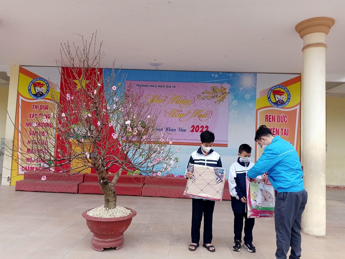 Sáng ngày 26/1/2021 lãnh đạo của quận đoàn Hồng Bàng đã đến trường THCS Ngô Gia Tự trao tặng hai suất quà cho học sinh có hoàn cảnh khó khăn nhân dịp Tết Nhâm Dần 2022.